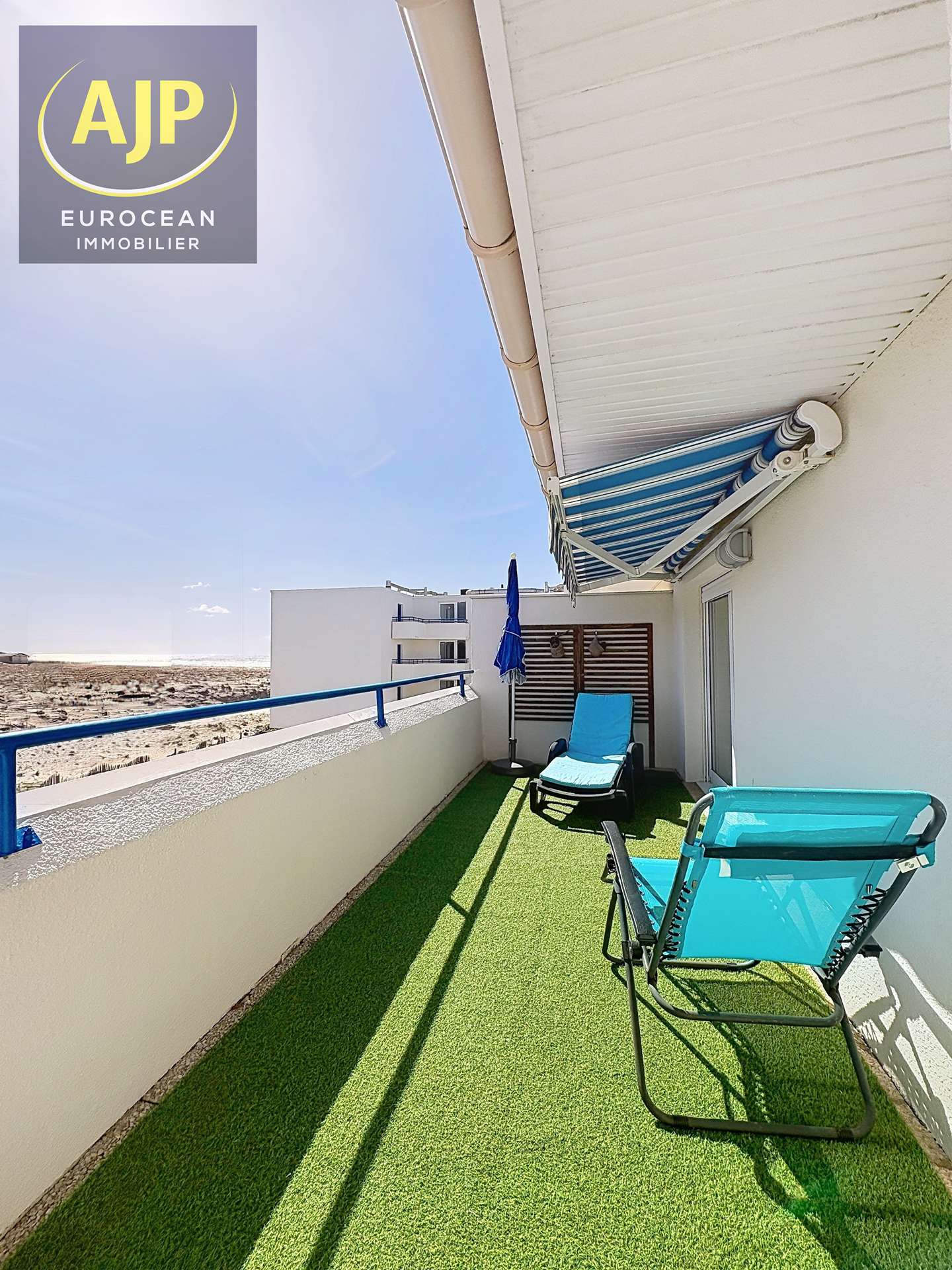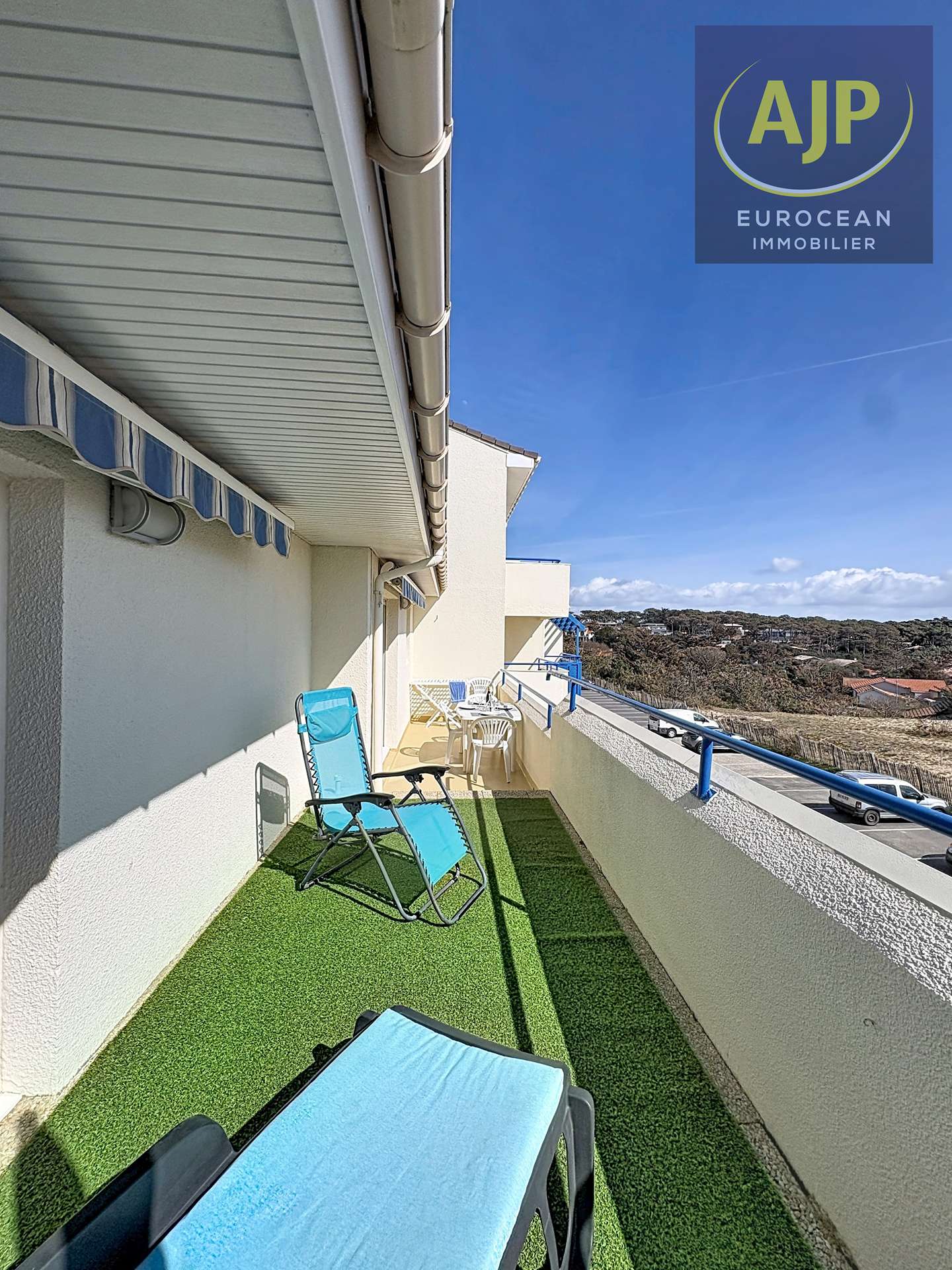 Au sein de la Résidence front de mer avec piscine "Bleu Marine", quartier sud de Lacanau, belle vue mer de la double terrasse, agréable et grand appartement, 45m² environ, au 2ème étage, pour l'accueil de 5 personnes. Résidence calme, sécurisée avec piscine (ouverte du 15 juin au 15 septembre), aire de jeu, ascenseur et laverie. Vous bénéficiez d'un accès direct à la plage par un portillon situé au bout de la résidence. Espace cuisine, ouvert sur la pièce à vivre, équipée d'un canapé convertible (140 cm). Le salon/salle à manger ouvre, par baie vitrée, sur la double terrasse, exposition sud-ouest, aménagée de mobilier de jardin. Les couchages sont répartis entre la chambre double (couchage 140 cm) et la chambre cabine équipée de lits superposés (90 cm). Les sanitaires comprennent une baignoire, une vasque et des WC indépendants. Place de parking privée et en sous sol. Rejoignez la plage et les écoles de surf à 100 m, les commerces, restaurants, glaciers, boutiques à 500 m, le golf à 3 km ou le lac à 6 km environ (REF 02422)