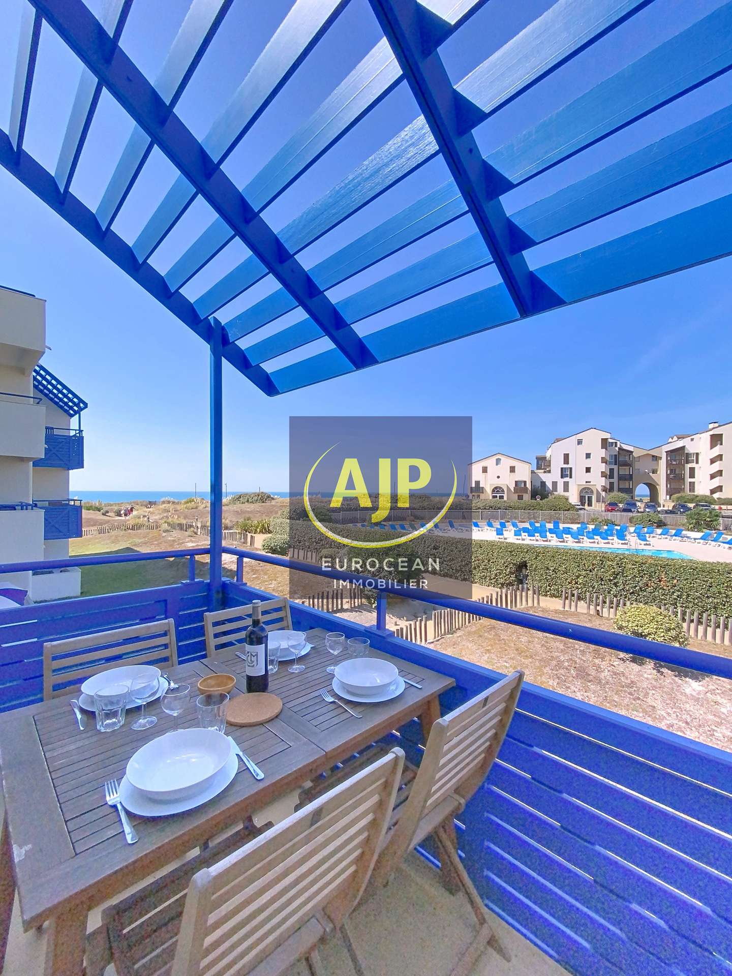 Au sein de la Résidence front de mer avec piscine "Bleu Marine", quartier sud de Lacanau, belle vue mer de la double terrasse, agréable et grand appartement, 46m² environ, au 1er étage, pour l'accueil de 5/6 personnes. Résidence calme, sécurisée avec piscine (ouverte du 15 juin au 15 septembre), aire de jeu, ascenseur et laverie. Vous bénéficiez d'un accès direct à la plage par un portillon situé au bout de la résidence. Espace cuisine, ouvert sur la pièce à vivre, équipée de banquettes gigognes (2x90cm). Le salon/salle à manger ouvre, par baie vitrée, sur la double terrasse, exposition Ouest / Nord-ouest, aménagée de mobilier de jardin. Les couchages sont répartis entre la chambre double (couchage 140cm) et la chambre équipée de 2 lits simples (80 cm), couchage pour 1 à 2 personnes sur les banquettes gigognes. Les sanitaires comprennent une douche, vasque et des WC indépendants. Une place de parking au sous sol vous est accessible. Rejoignez la plage et les écoles de surf à 100 m, les commerces, restaurants, glaciers, boutiques à 500 m, le golf à 3 km ou le lac à 6 km environ (REF 02423)