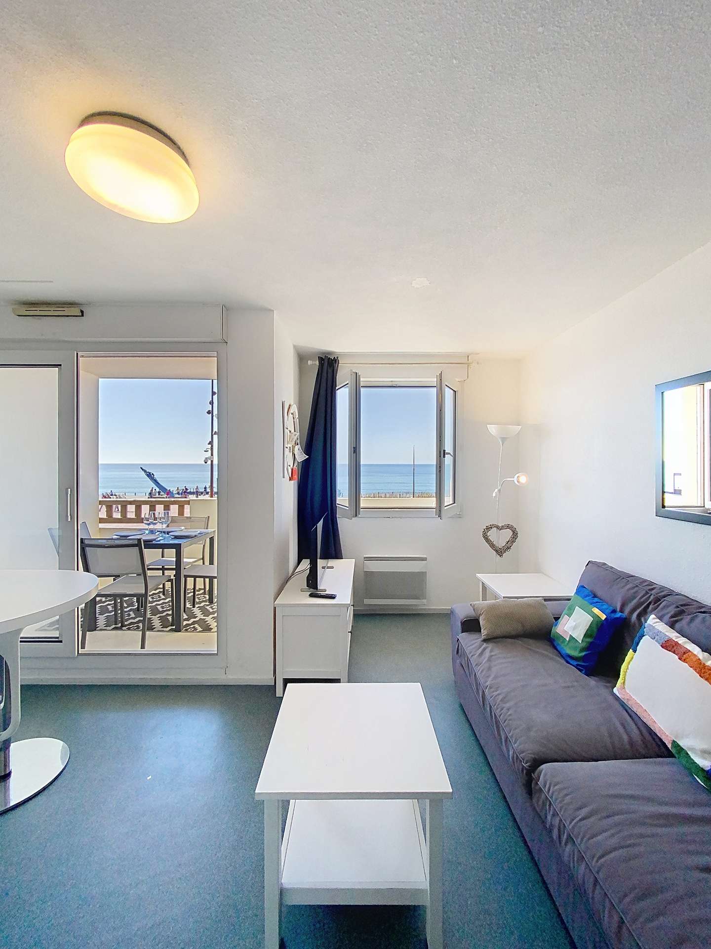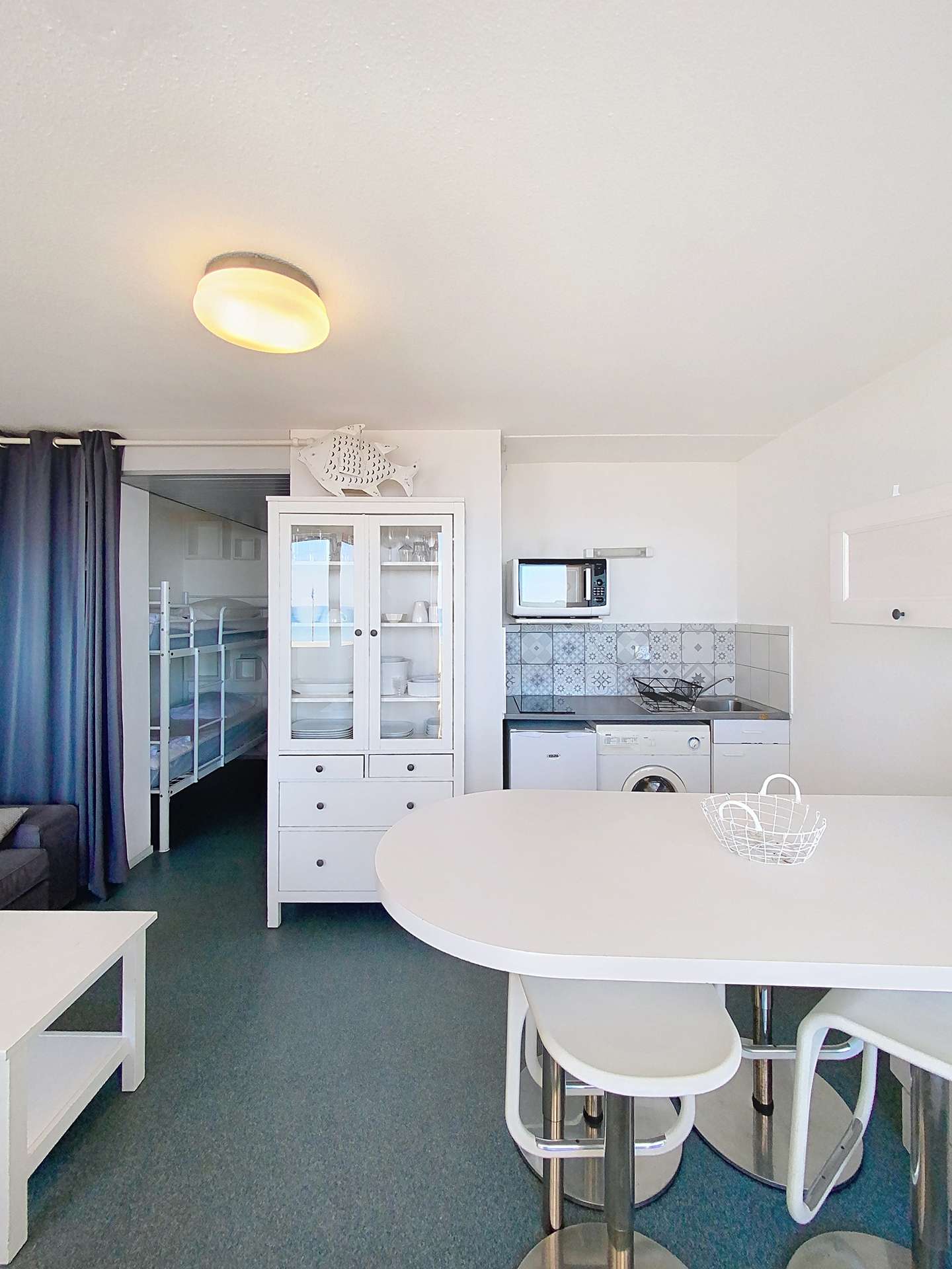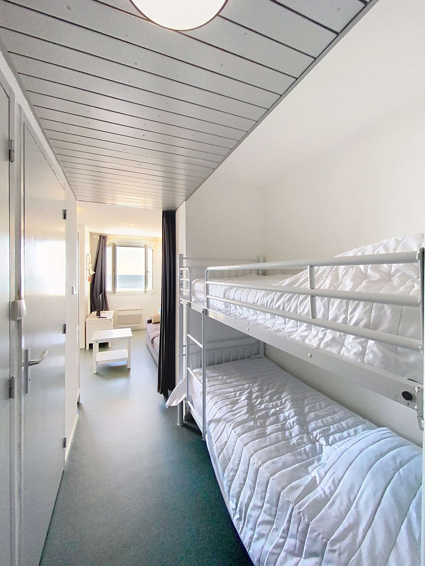 Résidence front de mer "Ortal". Appartement rénové, 31m², pour l'accueil de quatre personnes maximum situé dans quartier animé à proximité des restaurants et commerces. La pièce principale avec espace kitchenette, fait office de salon et coin repas, elle donne sur un balcon, équipé de mobilier de jardin, offrant une belle vue océan. La chambre est équipée d'un lit double. Un second espace nuit, séparé de la pièce principale par un rideau, comprend des lits superposés (2 couchages individuels 80cmx2 déconseillés aux enfants de moins de 6 ans). Les sanitaires comprennent une douche, vasque et des WC indépendants. Le box, en sous-sol, a des dimensions réduites L=4,94m x l=2,13m x H=1,86m (ne convient pas à tous les véhicules). Rejoignez la plage, les commerces, restaurants et glaciers à 30m, le golf à 3km et le lac à 6km (REF 01381)