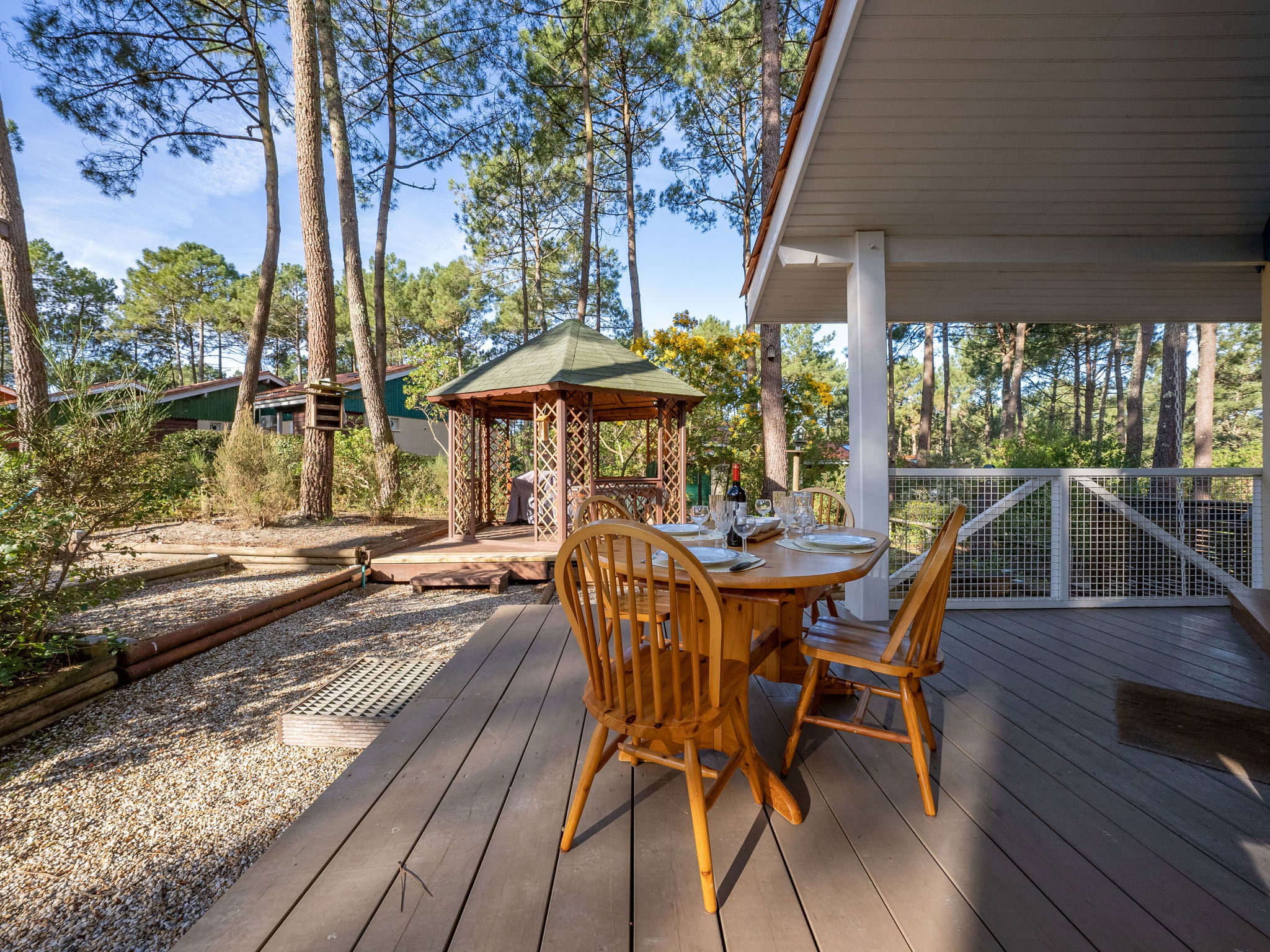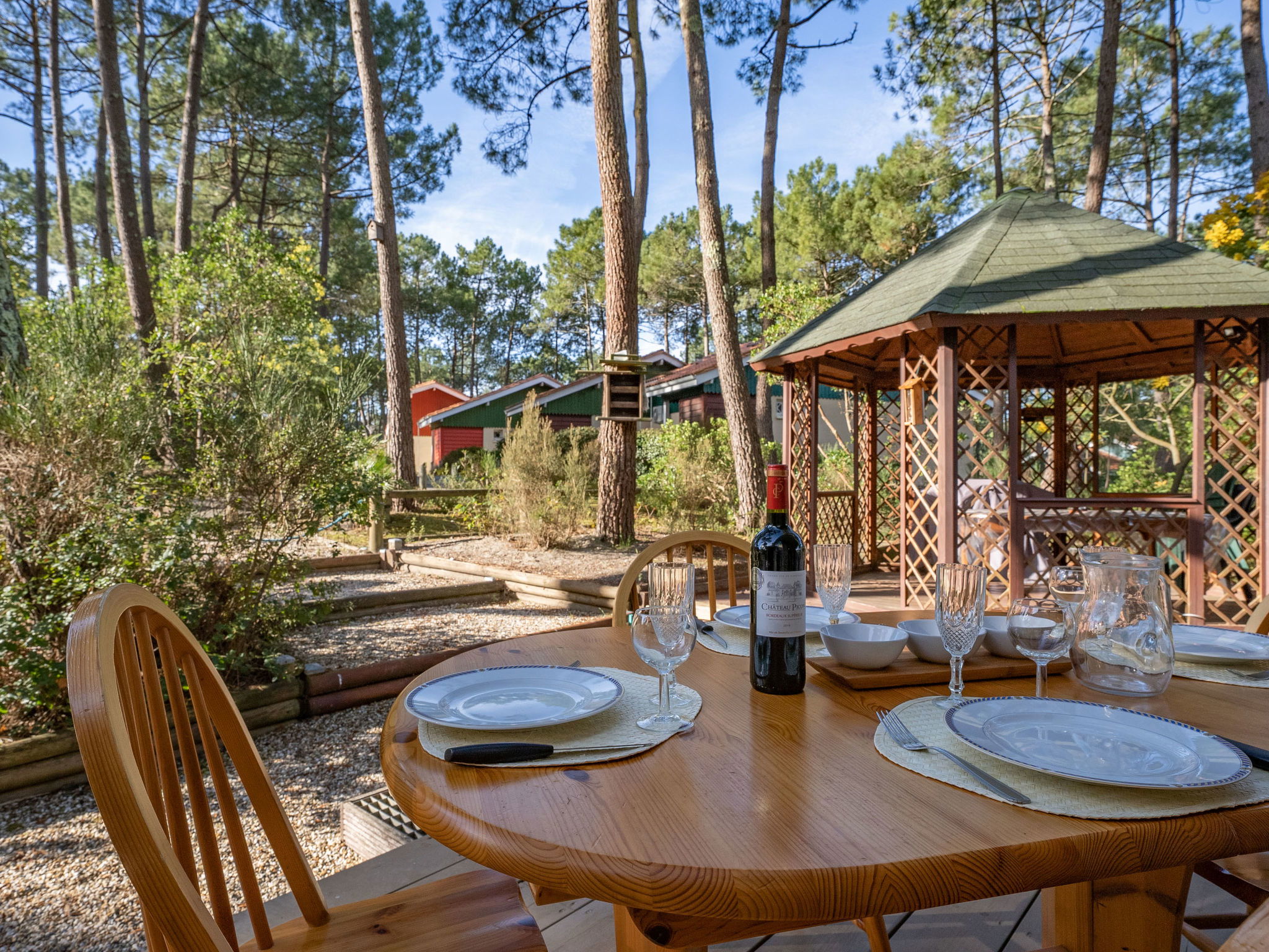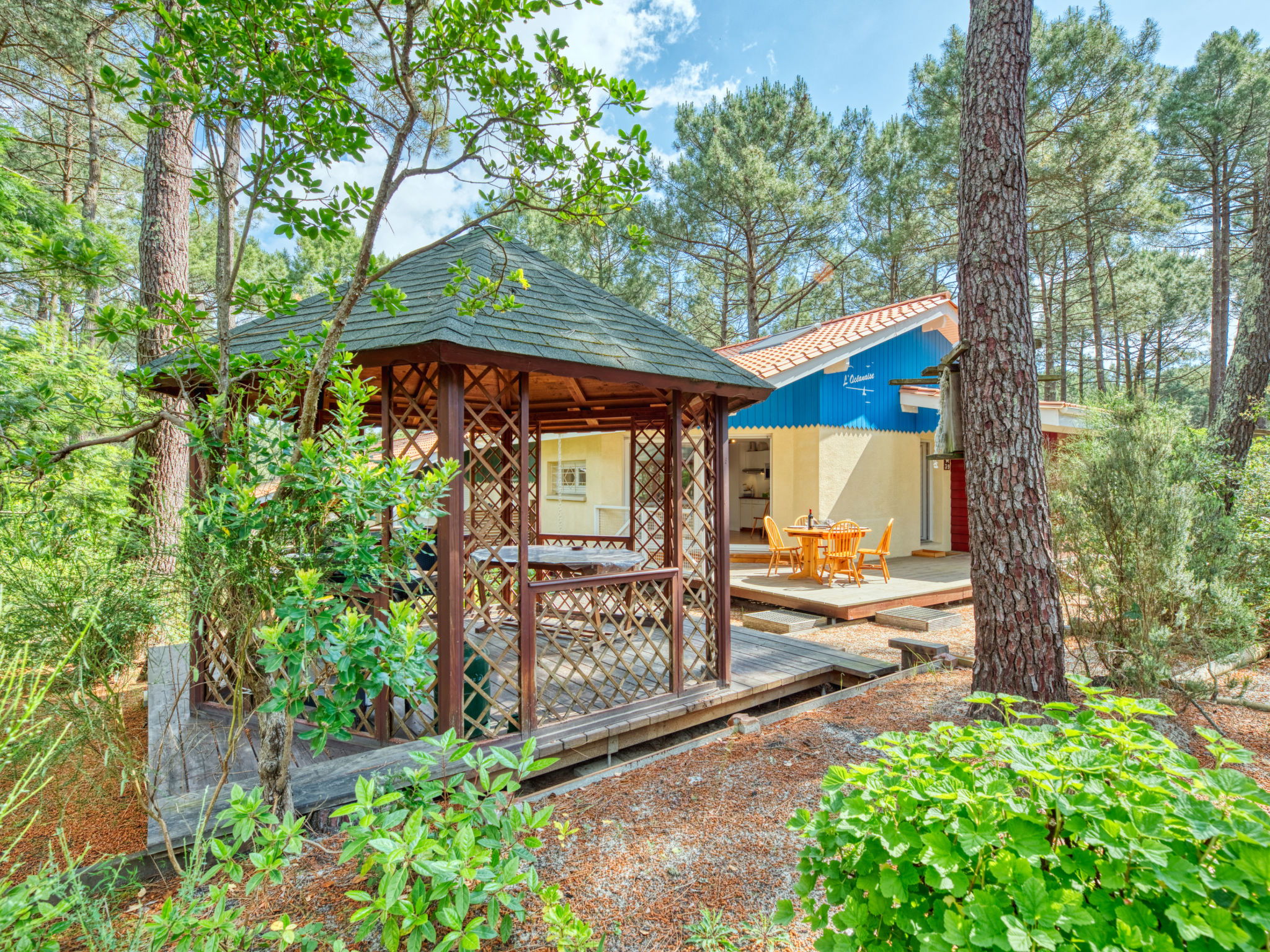 Résidence "Golf Loisirs". En bordure de la localité, à 2 km du centre, à 2 km de la mer, à 5 km du lac, à 2 km de la plage. En commun: piscine (13 x 17 m, profondeur 180 cm, disponibilité saisonnière: 18.Jun. - 18.Sep.). Place de parking sur le terrain. Magasins 2 km, supermarché 2 km, restaurant 700 m, location de bicyclettes 300 m, arrêt de bus "Marie Curie" 1.7 km, plage de sable "Plage Sud" 2 km. Terrain de golf (18 trous) 500 m, ecole de surf 3 km, ecole de voile 6 km, tennis 300 m, centre équestre 1.5 km, piste cyclable 200 m. Attractions à proximité: Bordeaux 60 km, Dune du Pyla 70 km, saint Emilion 60 km, Cap Ferret 70 km. Le propriétaire n'accepte pas les groupes de jeunes.