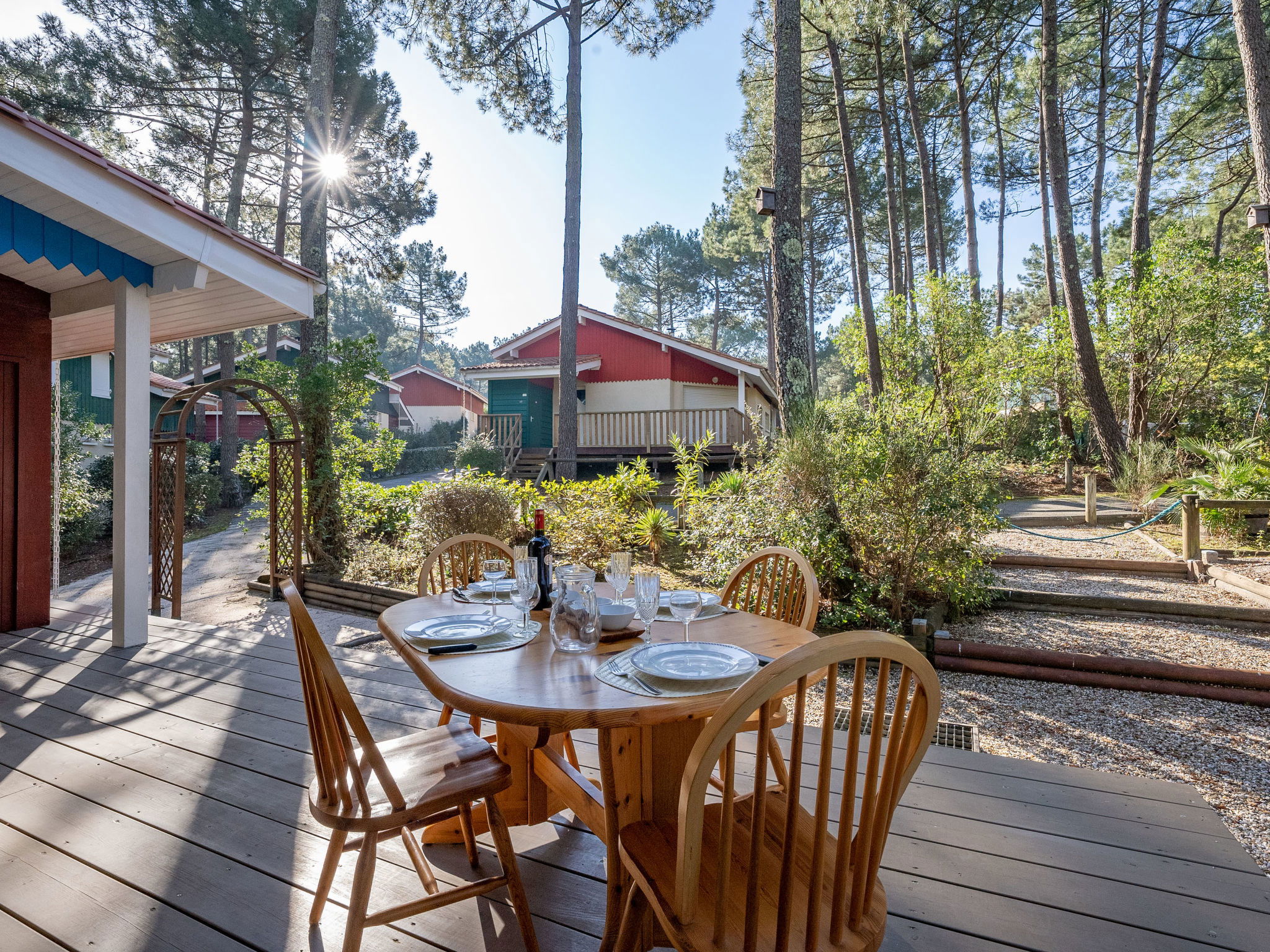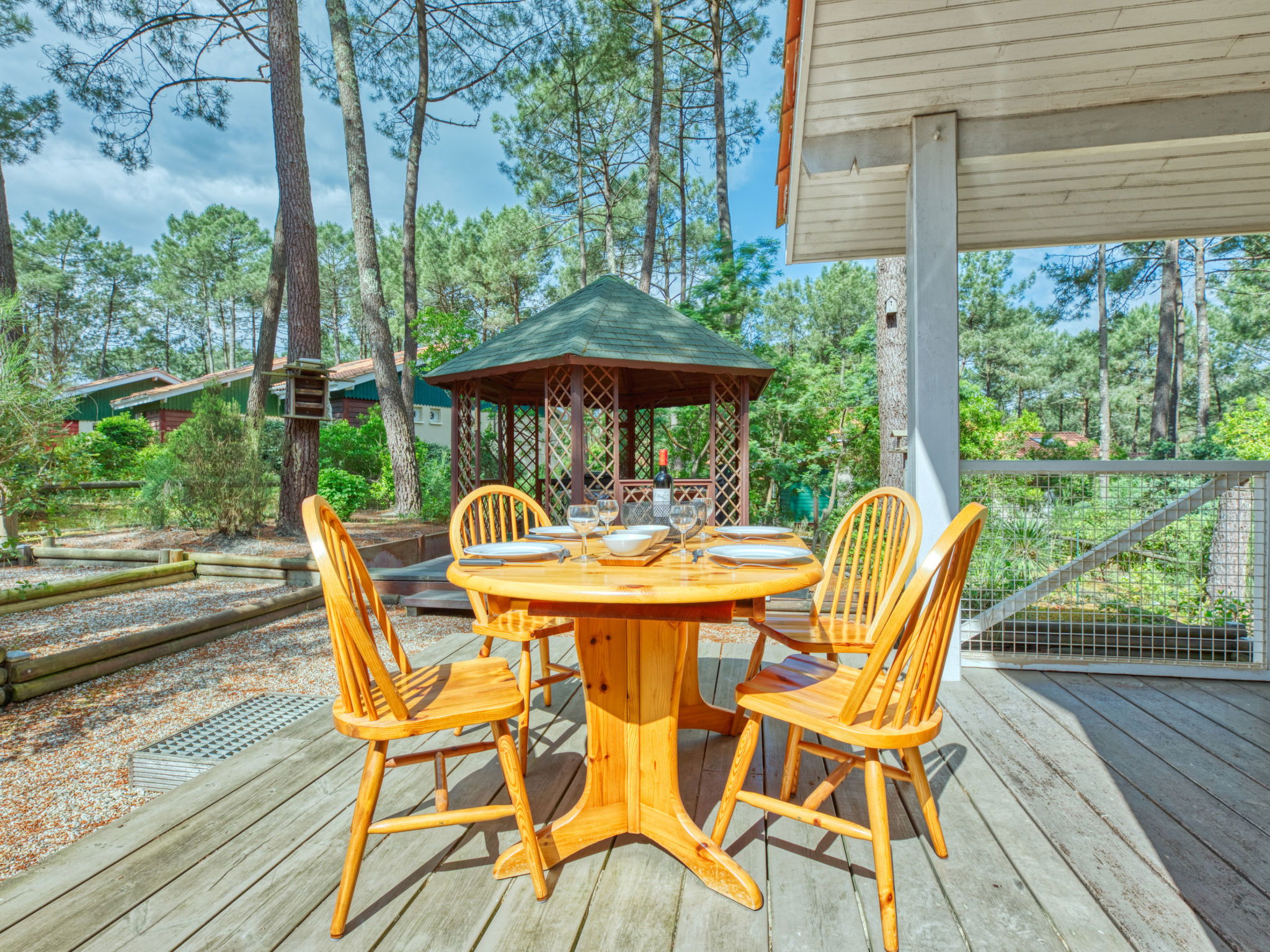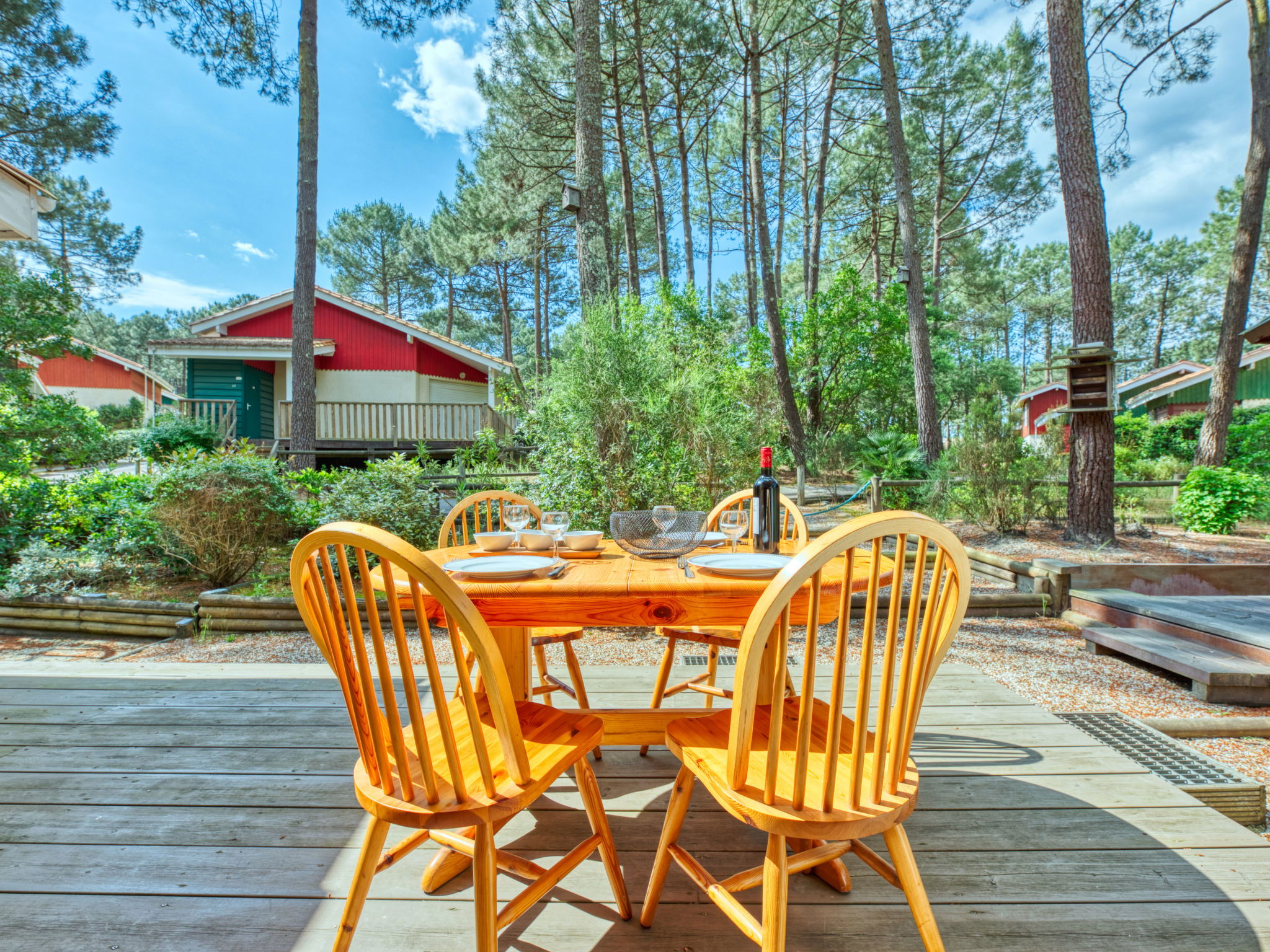 Résidence "Golf Loisirs". En bordure de la localité, à 2 km du centre, à 2 km de la mer, à 5 km du lac, à 2 km de la plage. En commun: piscine (13 x 17 m, profondeur 180 cm, disponibilité saisonnière: 18.Jun. - 18.Sep.). Place de parking sur le terrain. Magasins 2 km, supermarché 2 km, restaurant 700 m, location de bicyclettes 300 m, arrêt de bus "Marie Curie" 1.7 km, plage de sable "Plage Sud" 2 km. Terrain de golf (18 trous) 500 m, ecole de surf 3 km, ecole de voile 6 km, tennis 300 m, centre équestre 1.5 km, piste cyclable 200 m. Attractions à proximité: Bordeaux 60 km, Dune du Pyla 70 km, saint Emilion 60 km, Cap Ferret 70 km. Le propriétaire n'accepte pas les groupes de jeunes.