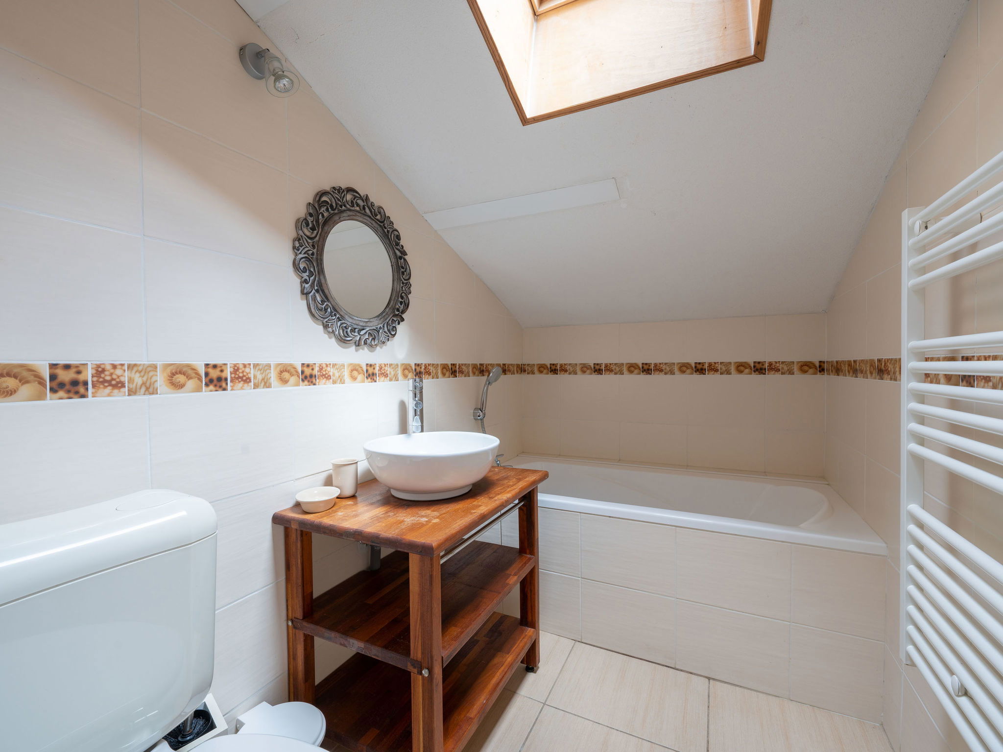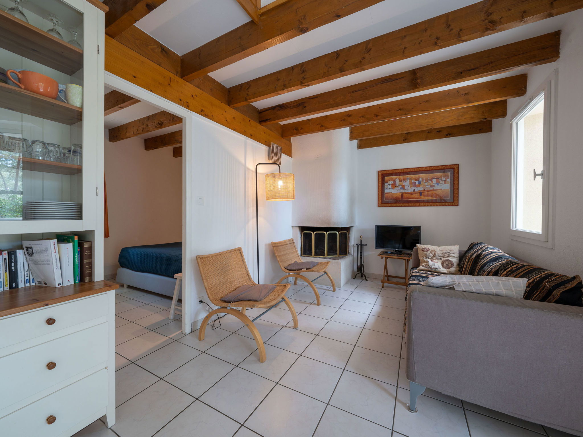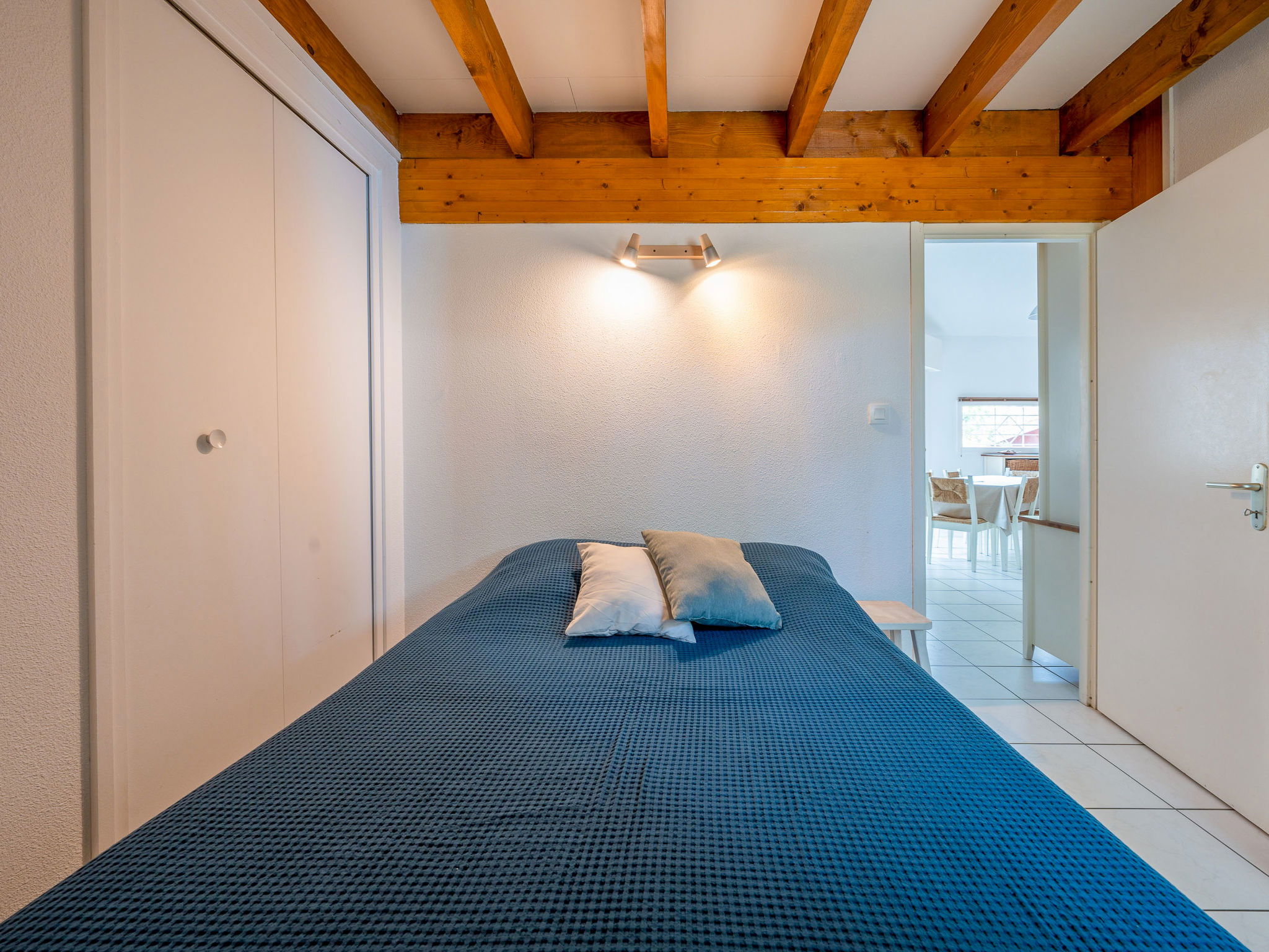 Maison mitoyenne 4 pièces 70 m2 sur 2 niveaux. Aménagement confortable: séjour/salle à manger avec cheminée et écran plat. 1 chambre avec 1 grand-lit. Grande coin cuisine (4 plaques de cuisson, four, lave-vaisselle, 4 plaques vitrocéramiques, cafetière électrique). Douche/WC. À l'étage supérieur: 1 chambre avec 1 lit gigogne (2 pers.). 1 chambre avec 1 grand-lit. Bain/WC. Chauffage électrique, air-conditionné. Terrasse, situation ouest, jardinet. Meubles de terrasse, chaises longues. A disposition: lave-linge, fer à repasser. Internet (Connexion WIFI, gratuit). Place de parking No 18 (2 Voitures). Veuillez noter: logement non-fumeur. Maximum 1 animal/ chien autorisé. Détecteur de fumée.