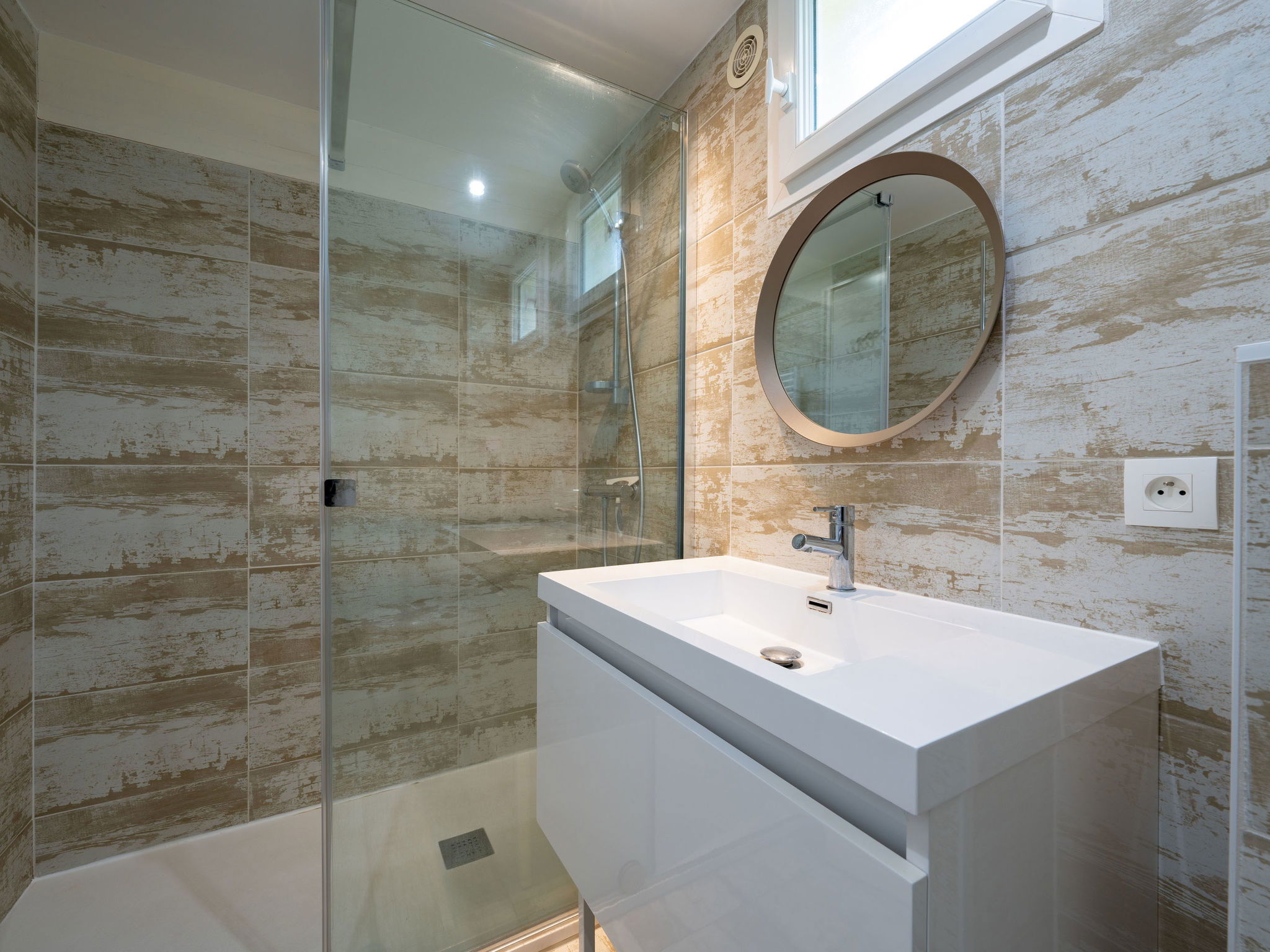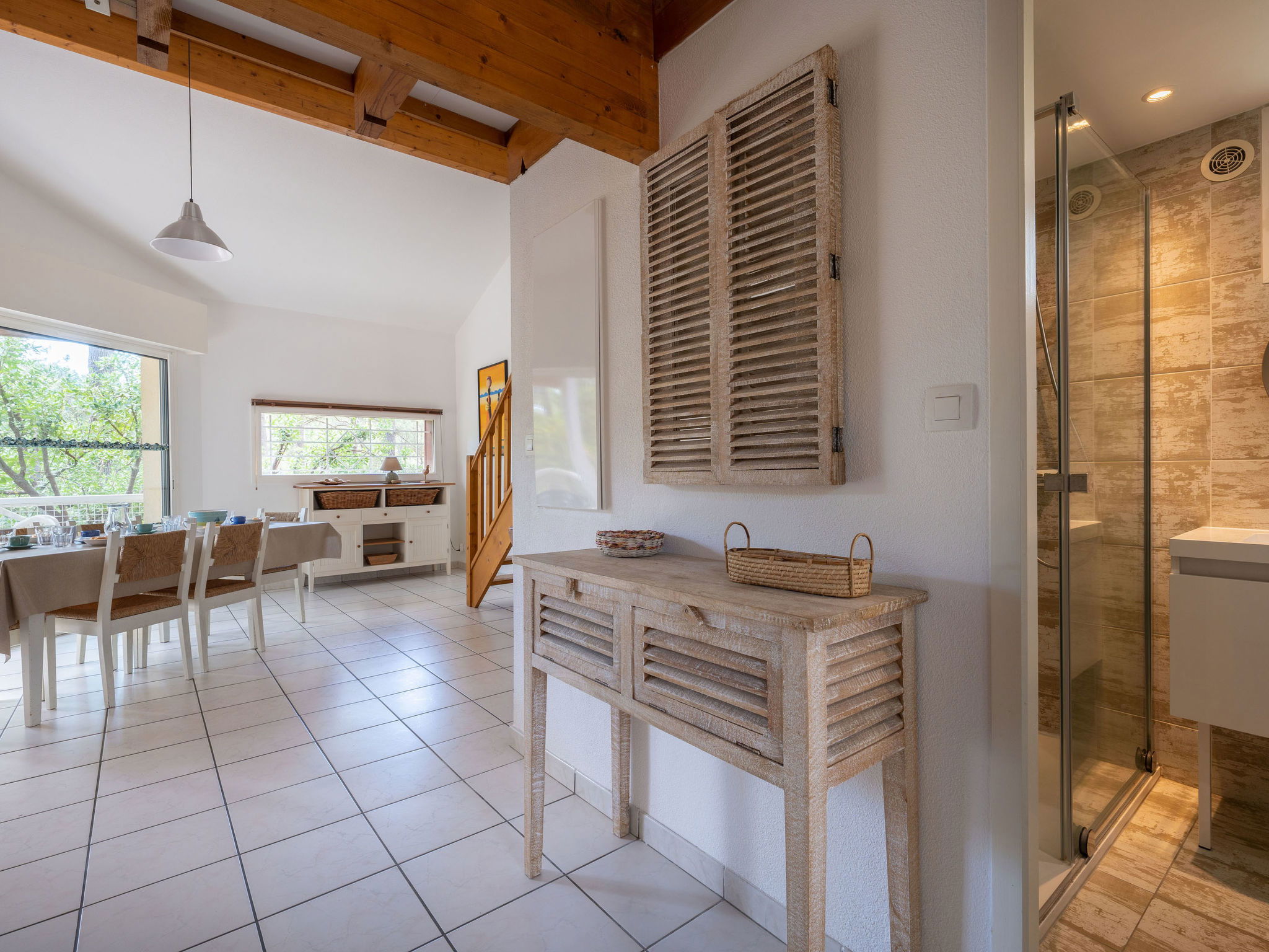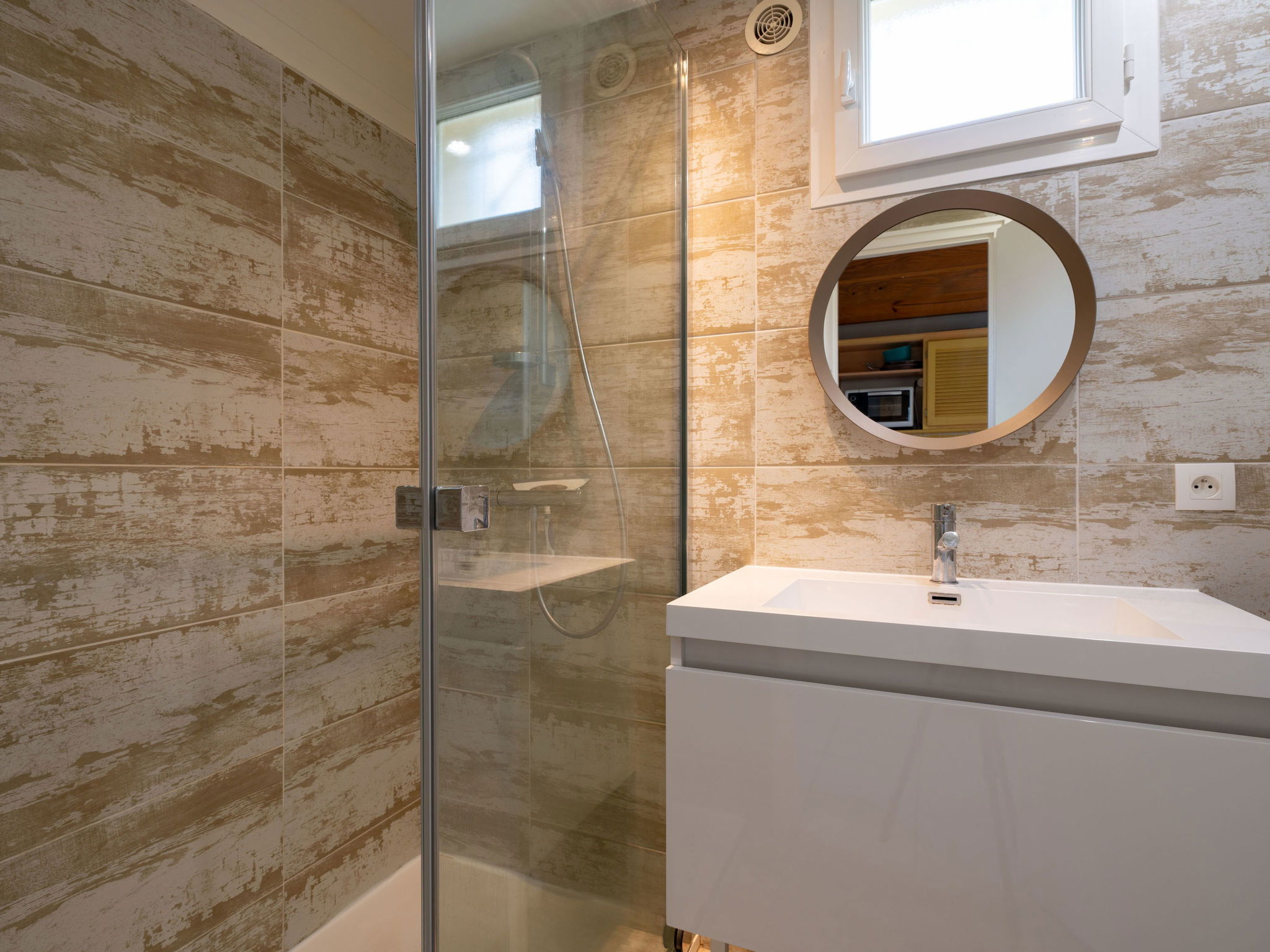 Maison mitoyenne 4 pièces 70 m2 sur 2 niveaux. Aménagement confortable: séjour/salle à manger avec cheminée et écran plat. 1 chambre avec 1 grand-lit. Grande coin cuisine (4 plaques de cuisson, four, lave-vaisselle, 4 plaques vitrocéramiques, cafetière électrique). Douche/WC. À l'étage supérieur: 1 chambre avec 1 lit gigogne (2 pers.). 1 chambre avec 1 grand-lit. Bain/WC. Chauffage électrique, air-conditionné. Terrasse, situation ouest, jardinet. Meubles de terrasse, chaises longues. A disposition: lave-linge, fer à repasser. Internet (Connexion WIFI, gratuit). Place de parking No 18 (2 Voitures). Veuillez noter: logement non-fumeur. Maximum 1 animal/ chien autorisé. Détecteur de fumée.