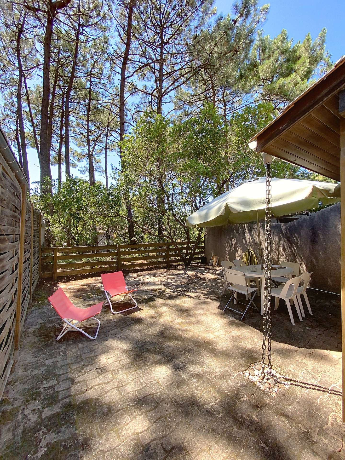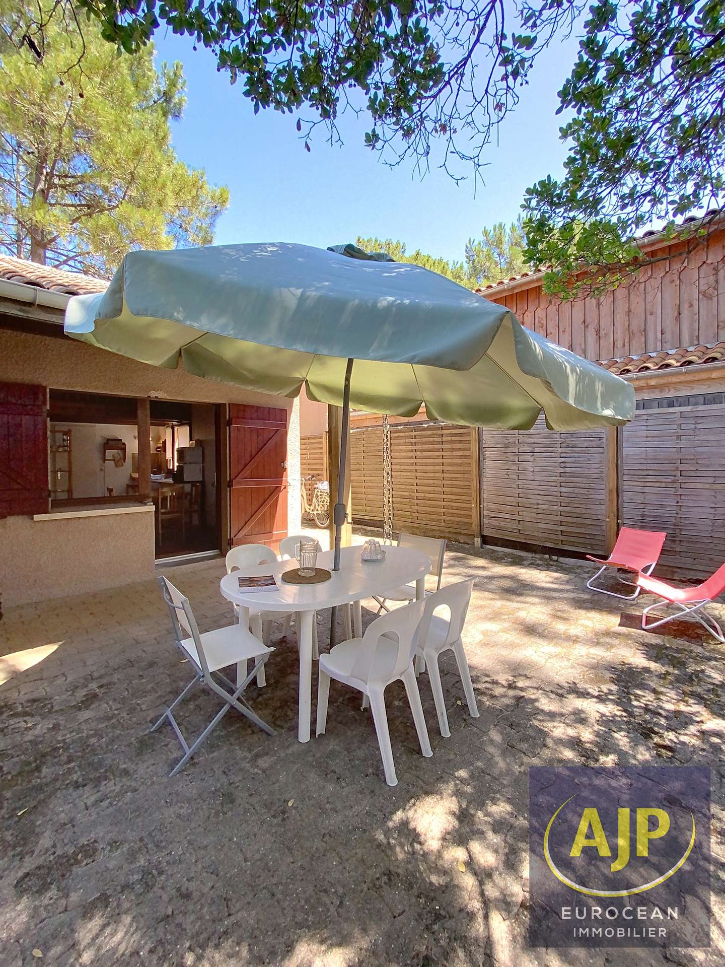 Résidence "Les As II", quartier sud de Lacanau, située au sommet de la dune du quartier Pipeyrous, proche du club de tennis avec un accès rapide aux plages et centre de la station par les pistes cyclables ou sentiers pédestres. Maison, mitoyenne sur un côté, pour l'accueil de quatre personnes. La pièce principale fait office de salon/salle à manger comporte un espace cuisine équipé, elle ouvre par une porte fenêtre sur une grande terrasse exposée sud ouest sans vis à vis. Une chambre cabine au RDC est équipée de lits superposés (2 lits simples), la grande mezzanine est équipée d'un lit double. Salle de bain et WC sont au Rez-de-jardin. Vous bénéficiez d'une place de parking extérieure numérotée, votre animal de compagnie est bienvenu au sein de cet hébergement. Rejoignez la plage, les commerces, les écoles de surf, les glaciers et restaurants à 1,5 km, le golf à 2 km et le lac à 6 km (REF 01230M) - )