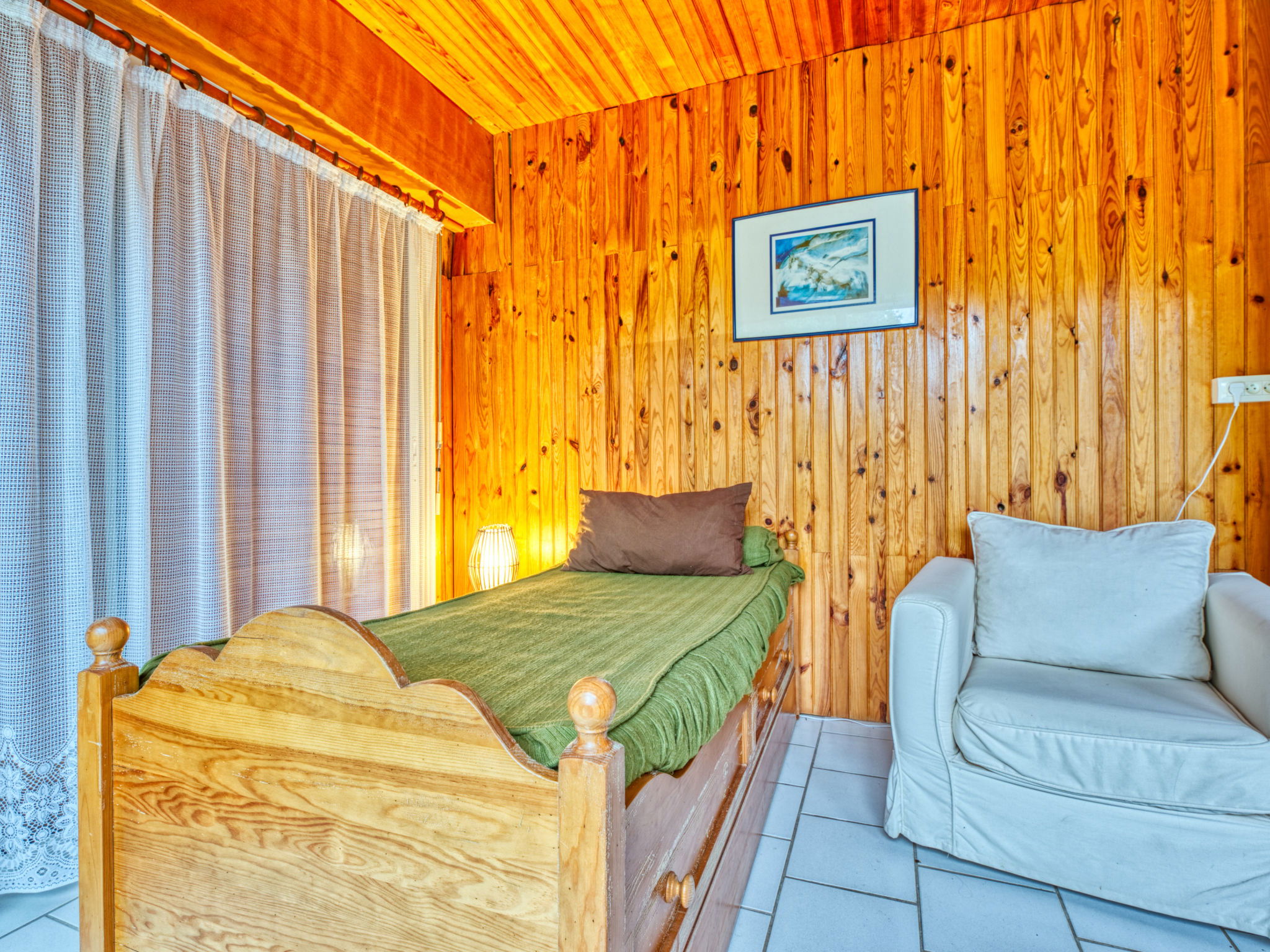 Maison individuelle "L'étang". En bordure de la localité, à 2 km du centre de Lacanau-Ville, à 150 m de la forêt, à 14 km de la mer, à 350 m du lac, à 350 m de la plage, orientée sud-est. A usage privé: jardin 500 m2 (clôturé). Terrasse (15 m2), meubles de jardin, place de parking sur le terrain. Magasins 2.2 km, supermarché 3.5 km, restaurant 1.3 km, arrêt de bus "Ville" 2.6 km, plage de sable "Port de Lacanau Ville" 350 m, baignade en lac "Lac de Lacanau" 350 m. Port plaisance 500 m, terrain de golf (18 trous) 11 km, ecole de surf 14.5 km, ecole de voile 8.5 km, tennis 13.5 km, golf miniature 12.5 km, centre équestre 3.2 km. Attractions à proximité: Dune du Pyla 80 km, Bordeaux 47 km, Saint-Emilion 87 km, Cap-Ferret 50 m. Les lacs connus sont facilement accessibles: Lac de Lacanau 350 m, Lac de Maubuisson 20 km. La remise des clés a lieu à l’agence de Lacanau, 13 km.