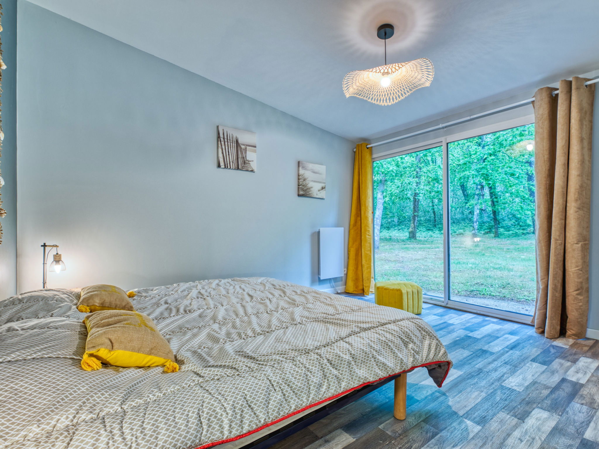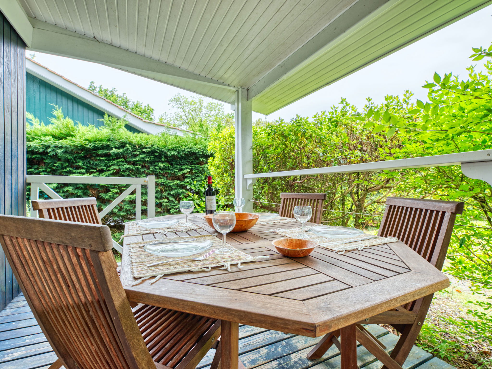 Le Moutchic à 8 km de Lacanau-Océan: Résidence "Domaine de Pitrot". En-dehors de la localité, à 4 km du centre de Lacanau-Médoc, dans la forêt. Magasins 4 km, restaurant 250 m, arrêt de bus "Pitrot" 850 m, plage de sable 8 km, plage de gazon"Le Moutchic" 3 km. Terrain de golf 4 km, tennis 5 km, centre équestre 1 km. La résidence se compose d'un groupe de 20 chalets de style scandinave et se trouve sur un terrain de 31 ha avec 2 plans d'eau privés pour l'école de ski nautique. Lac avec plage de sable 2 km.