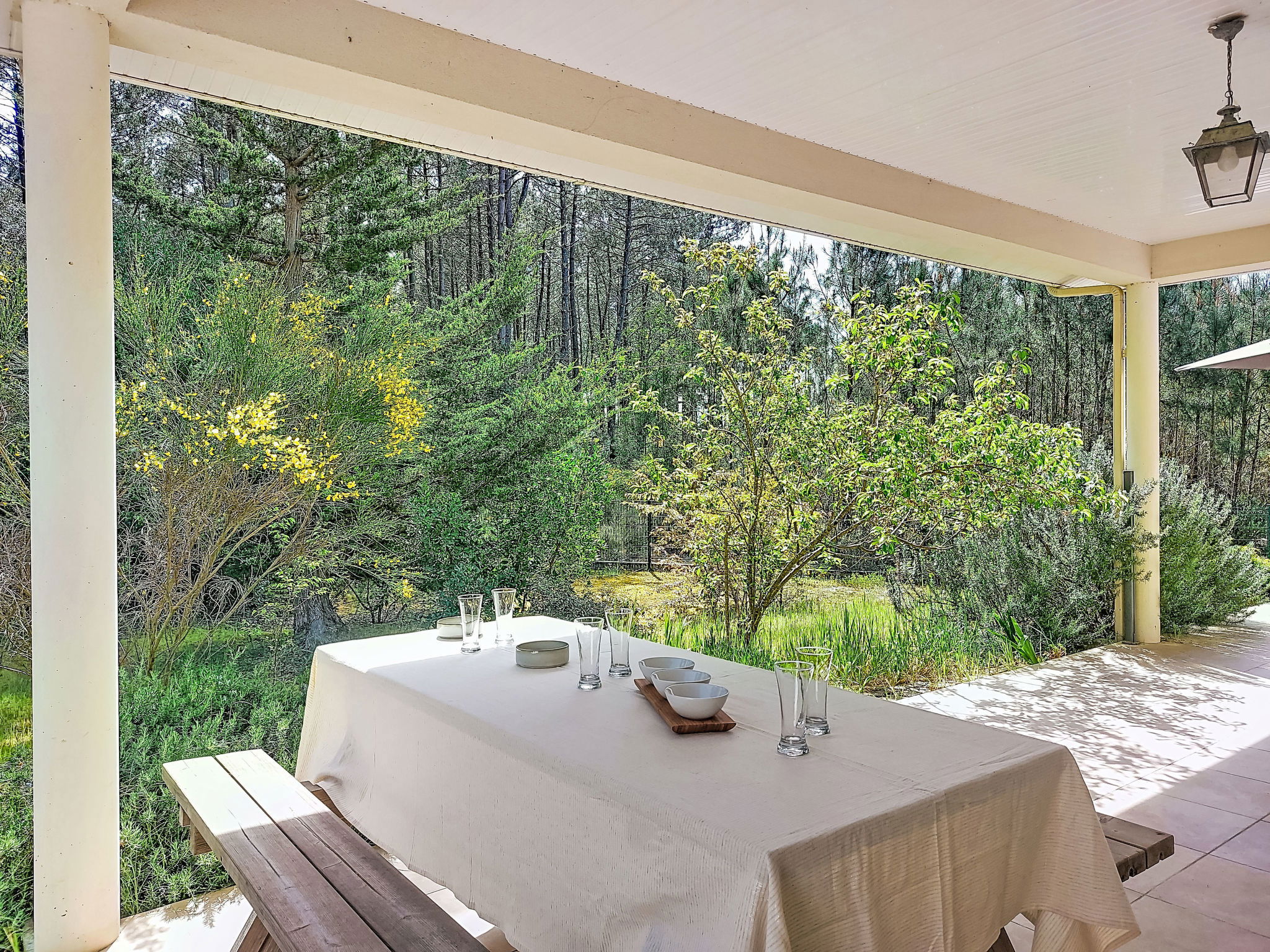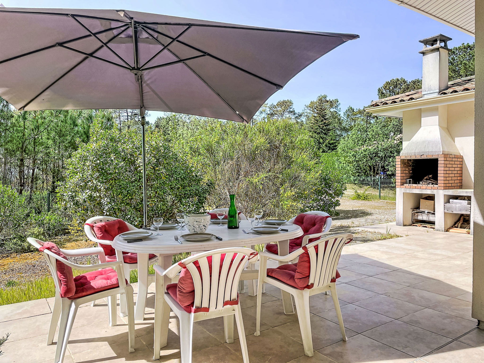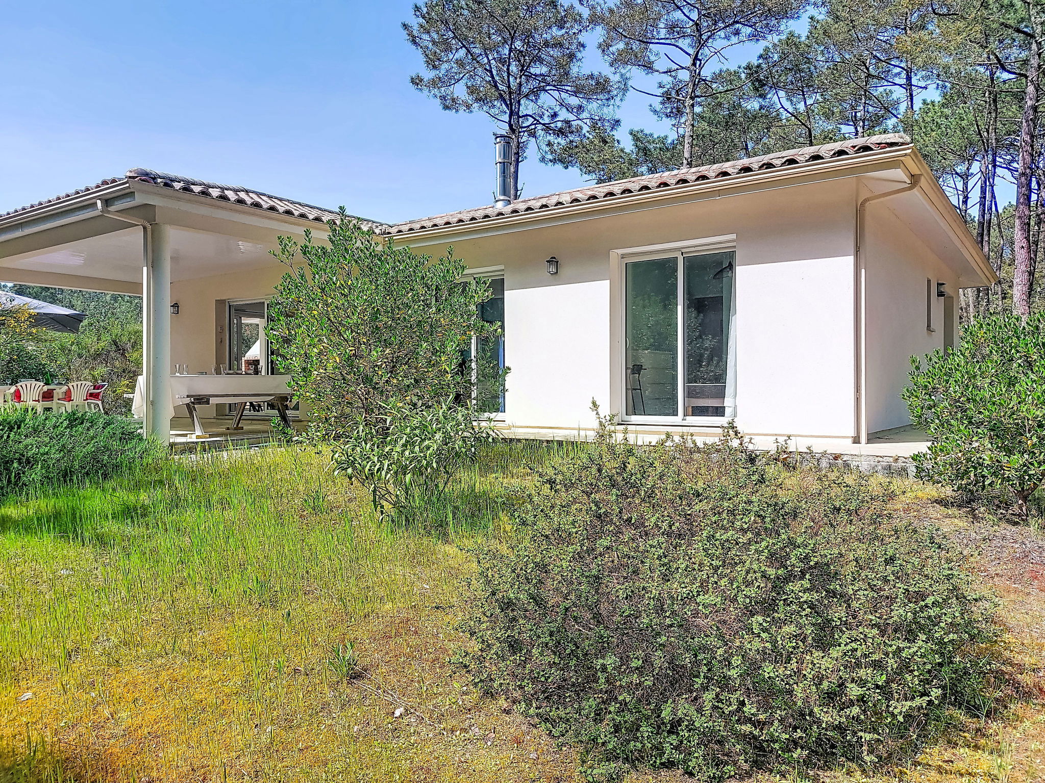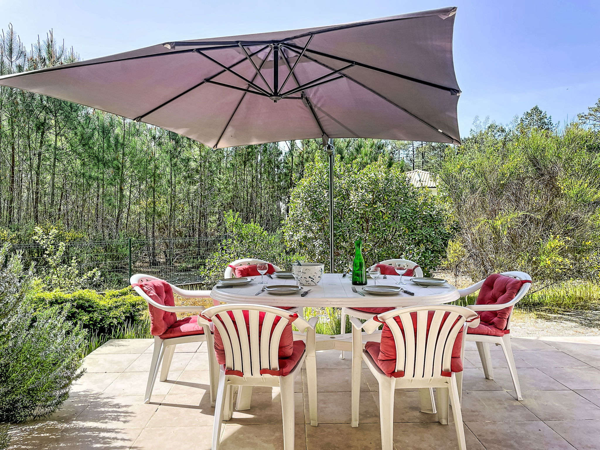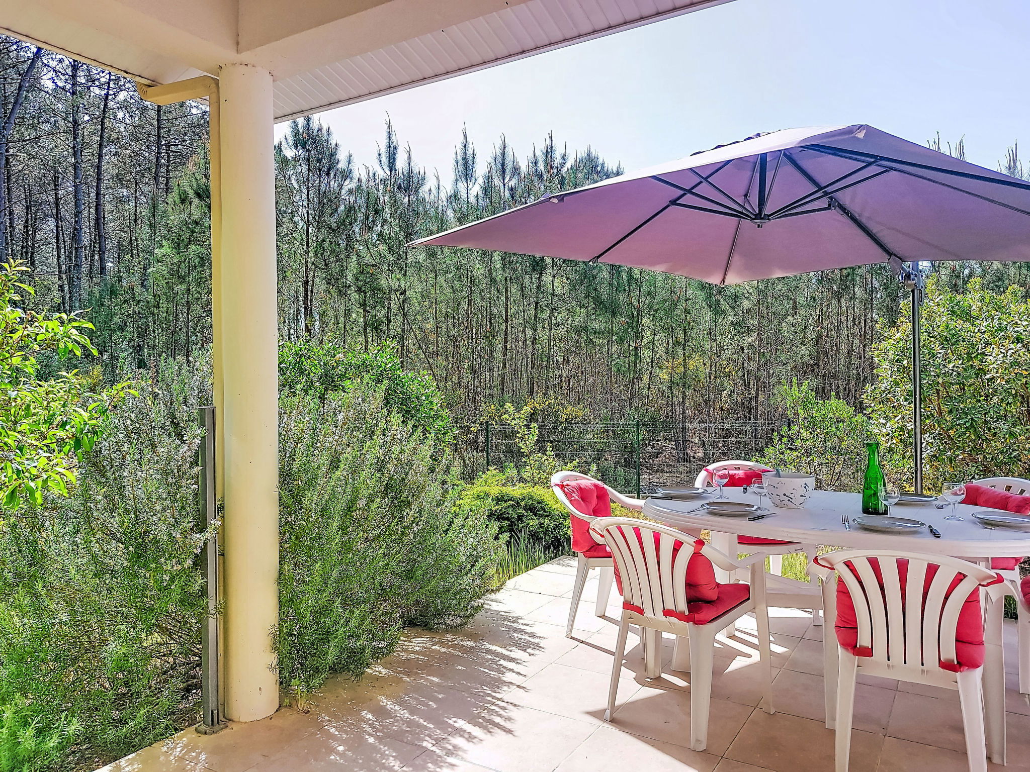 Longarisse à 10 km de Lacanau-Océan: Belle maison individuelle "Hibiscus 10", environnée par les arbres. Dans le quartier de longarisse, zone avec peu de trafic, à 10 km de la mer, à 200 m du lac, à 200 m de la plage, dans une impasse, orientée sud. En commun: terrain 1'000 m2, jardin propice à la détente. Terrasse (40 m2), espace barbecue, place de parking (pour 4 voitures). Magasins 10 km, restaurant 2 km, arrêt de bus "longarisse" 900 m, lac de lacanau 200 m. Terrain de golf (18 trous) 5 km, ecole de surf 10 km, ecole de voile 2 km, tennis 4 km, golf miniature 10 km. Possibilités de pêche 200 m. Attractions à proximité: Dune du Pilat 90 km, Bordeaux 60 km, Margaux 65 km, Ferret 48 km. Les lacs connus sont facilement accessibles: Moutchic 2 km, Maubuisson 15 km. Région de randonnées: vélodyssée 5 km, st jacques de Compostelle 5 m. Veuillez noter: adapté(e) aux familles. Groupes de jeunes sur demande seulement.